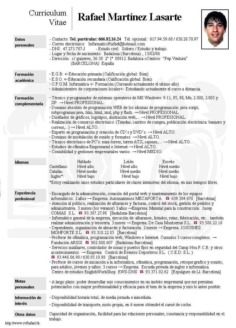 ·Visualizar y/o descargar currículum vitae de Rafael Martínez Lasarte :
